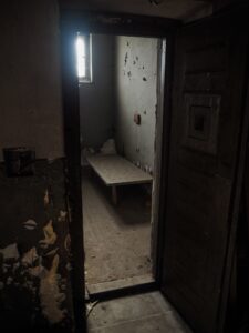 Historii věznice shrnu jen stručně, přestože by si zasloužila stránky a stránky detailního textu. Postavena byla na konci 19. století po požáru tehdejší věznice, která měla nedostatečnou kapacitu a také nevyhovující polohu (ve Františkánské ulici hned vedle kláštera, kam vězni utíkali). Za první republiky tady byli vězněni například účastníci tzv. hodonínské stávky. Během 2. sv. války budovu využívalo gestapo jako shromaždiště vězňů před transportem do koncentračních táborů nebo do brněnské věznice, kde se popravovalo (v těchto letech věznice výrazně překračovala své kapacitní možnosti). Po válce probíhaly tzv. lidové soudy, ačkoli o opravdové právní soudy se nejednalo – na nádvoří věznice byli popravováni lidé prohlášeni za kolaboranty s nacisty. Po únoru 1948 zde byli vězněni, mučeni a popravováni lidé nepohodlní tehdejšímu režimu. Byli to třeba rolníci ze Vsetínska, kteří se odmítli vzdát své půdy, nebo členové partyzánských organizací (například moravské odbojové skupiny Světlana). Mezi praktiky příslušníků StB patřilo tvrdé bití i mučení elektrickým proudem. Za jednoho z nejkrutějších vyšetřovatelů bývá považován Alois Grebeníček ze Starého Města, kterému se po revoluci podařilo nepřicházet k soudu, ke kterému byl za své činy předvolán. Věznice zanikla roku 1960 po další z reforem státní správy a od té doby stojí netknuta ve stejném stavu a chátrá.